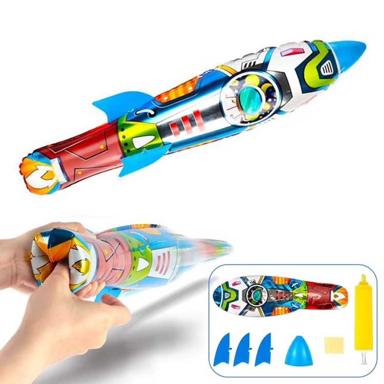 थ्रीडी रकेट पन्नी बेलुन फ्याँक्ने इन्फ्लेटेबल पनि खेलको सन्दर्भमा धेरै लचिलो; यसलाई बिजुलीको आवश्यकता पर्दैन, यसलाई उडान शक्तिको लागि हातले फाल्नुहोस्। रकेटलाई धेरै टाढासम्म उडाउनको लागि, यो सबै तपाईंले यसलाई कति उचाइमा समात्नु हुन्छ र फ्याँक्दा कति बल प्रयोग गर्नुहुन्छ, जति धेरै बल र जति माथि समात्नु हुन्छ, त्यति नै टाढा उड्ने कुरामा भर पर्छ।