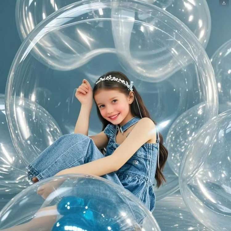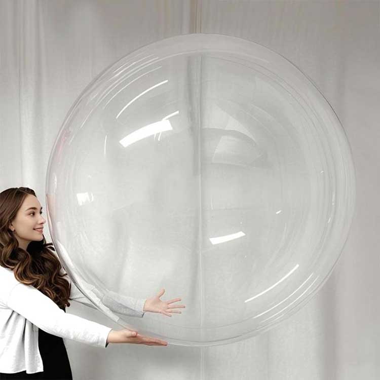४८ इन्चको राउण्ड क्लियर बोबो बेलुनहरू विभिन्न वातावरणमा अनुकूल हुन सक्छन्। १० LED लाइट स्ट्रिङहरूसँग जोड्दा र हेलियमले भरिएको हुँदा तिनीहरूले प्रकाश प्रभाव सिर्जना गर्न सक्छन्। यी बेलुनहरू सटीक मार्केटिङ हासिल गर्न व्यावसायिक प्रदर्शनीहरूको लागि प्रयोग गर्न सकिन्छ; तिनीहरू पनि रंगीन फोम वा पंख पंखुडी संग बच्चाहरु को पार्टी भर्न प्रयोग गर्न सकिन्छ। भर्खरको विवाहमा, 100 कस्टम-निर्मित 48-इन्च राउन्ड पारदर्शी बबल बेलुनहरू प्रयोग गरियो र उच्च प्रशंसा जित्यो।