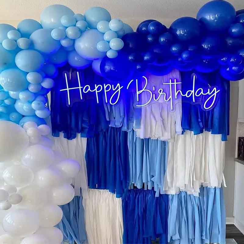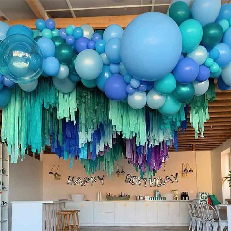 2. बेलुनहरू सजावट पट्टीमा बेलुनहरू।