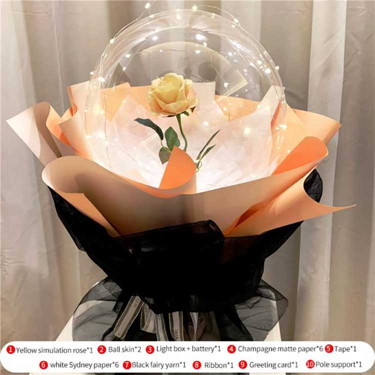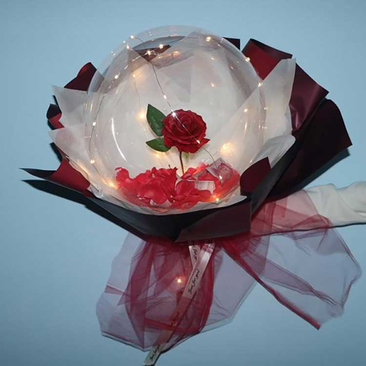 BOBO बेलुनअविश्वसनीय वायुमण्डलीय छ:पारदर्शी BOBO बेलुनहरू, इम्बेडेड गुलाबहरू, र LED बत्तीहरू प्रस्तुत गर्दै, सेटले उज्ज्वल र रोमान्टिक दृश्य प्रभाव सिर्जना गर्दछ। LED बत्तीहरूले नरम चमक पनि प्रदान गर्दछ, यसलाई भ्यालेन्टाइन डे, वार्षिकोत्सव, जन्मदिन, स्नातक, र आमाको दिनको लागि एक आवश्यक उपहार बनाउँछ।