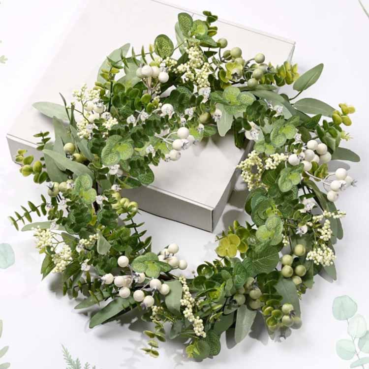 सजावटको मालाले यसको मुख्य तत्वको रूपमा पातहरू समावेश गर्दछ, विभिन्न शैलीहरूमा विभिन्न फूलहरू सजावटको रूपमा लगाइन्छ, र समग्र आकार गोलाकार हुन्छ। पातहरूका नसाहरू स्पष्ट रूपमा देखिन्छन्, यसले जीवन्त प्रभाव सिर्जना गर्दछ। यसले पराबैंगनी विकिरणलाई सामना गर्न सक्छ र ओइलाउँदैन। यो क्रिसमसको समयमा घरको अगाडि सजावटको लागि शीर्ष विकल्प हो।