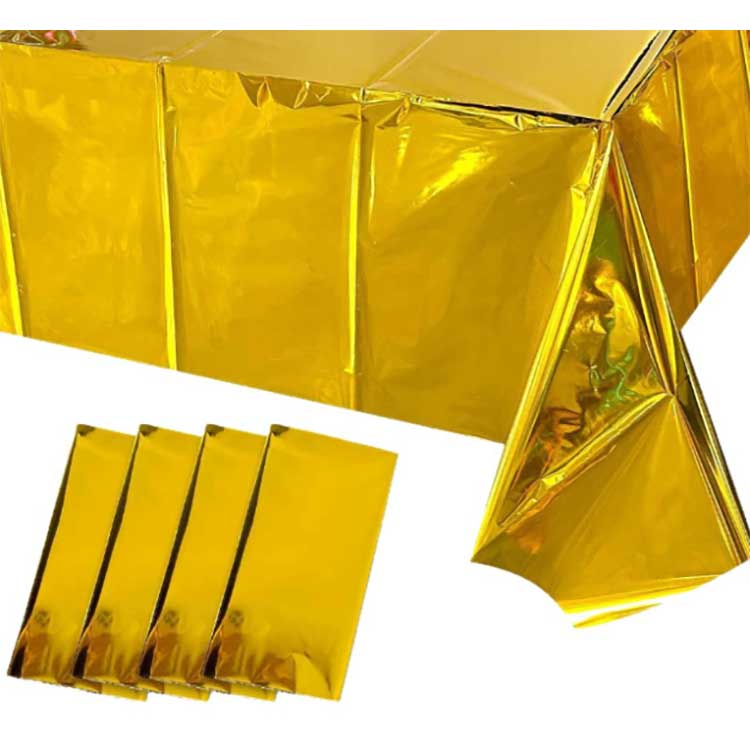 पन्नी टेबल कभर विभिन्न उत्सवहरूमा टेबल सेटिङको लागि प्रयोग गरिन्छ। यसले तालिकाको सतहलाई दाग, खरोंच वा क्षतिबाट रोक्न सक्छ, र रंग र ढाँचाहरूले सजावटी प्रभावहरू पनि ल्याउन सक्छ। यो विशेष पीईटी एल्युमिनियम लेपित फिल्म बनेको छ। निर्माण प्रक्रियाको बखत, हामीले टेबुल कभरको बल, कठोरता र एन्टी-एजिंग प्रदर्शन सुनिश्चित गर्न भ्याकुम कोटिंग टेक्नोलोजी प्रयोग गर्यौं। यसबाहेक, यसको उच्च-घनत्व अणुहरूले प्रभावकारी रूपमा सूप वा तेलको दागको प्रवेशलाई रोक्न सक्छ, र यसमा वाटरप्रूफ प्रकार्य पनि छ।