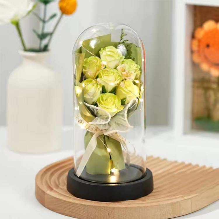 एलईडी सहितको गिलास डोम साबुन गुलाबको गुच्छा साबुनको फूल र संरक्षित फूलहरूसँग संयोजनमा प्रयोग गरिन्छ। एलईडी बत्तीहरूले न्यानो र गैर-चमकाउने प्रकाश प्रयोग गर्दछ, जसले दृश्यहरू सजाउँदा न्यानो वातावरण थप्न सक्छ। निर्मित एलईडी लाइट स्ट्रिङमा रंगीन फ्ल्यासिङ लाइटहरू पनि छन्, र रङ्गहरू तपाईंको आवश्यकताहरू पूरा गर्न अनुकूलित गर्न सकिन्छ। यो फूलहरू जन्म दिनको लागि सेट गर्न सकिन्छ। वार्षिकोत्सव, प्रस्ताव, आदि, र पनि गर्न सक्छन् उपहारको रूपमा दिनुहोस्। अनन्त फूलहरू ओइलाउँदैनन् र गिलासको आवरणले पनि रंग परिवर्तन गर्दैन। साबुन फूलहरू हात धुन वा सुगन्धको रूपमा पनि प्रयोग गर्न सकिन्छ। यो गुलाबको गुच्छा आर्थिक र व्यावहारिक छ।