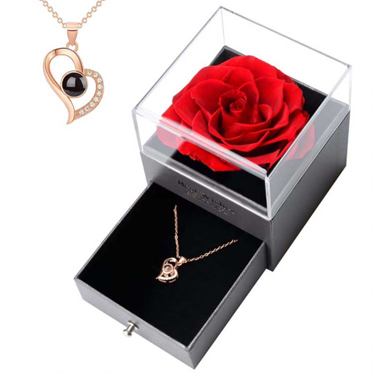 अमर फूलको उपहार बक्समा भएका गहनाहरू पनि हाम्रो विशेष डिजाइन हो। हामीले यस गहनाको लागि तीनवटा मुख्यधारा रङहरू डिजाइन गरेका छौं: सुन, चाँदी र गुलाब सुन। यो उच्च परिशुद्धता इलेक्ट्रोप्लेटिंग टेक्नोलोजी प्रयोग गरेर बनाइएको छ, यो सुनिश्चित गर्दै कि यो लामो समय सम्म लगाए पछि पनि फीका वा खिया हुनेछैन। गहनामा हीराहरू 5A ग्रेड जिरकोनियमबाट बनेका छन्, र 20 वर्षको अनुभव भएको डिजाइनरले सावधानीपूर्वक सेट गरेका छन्।